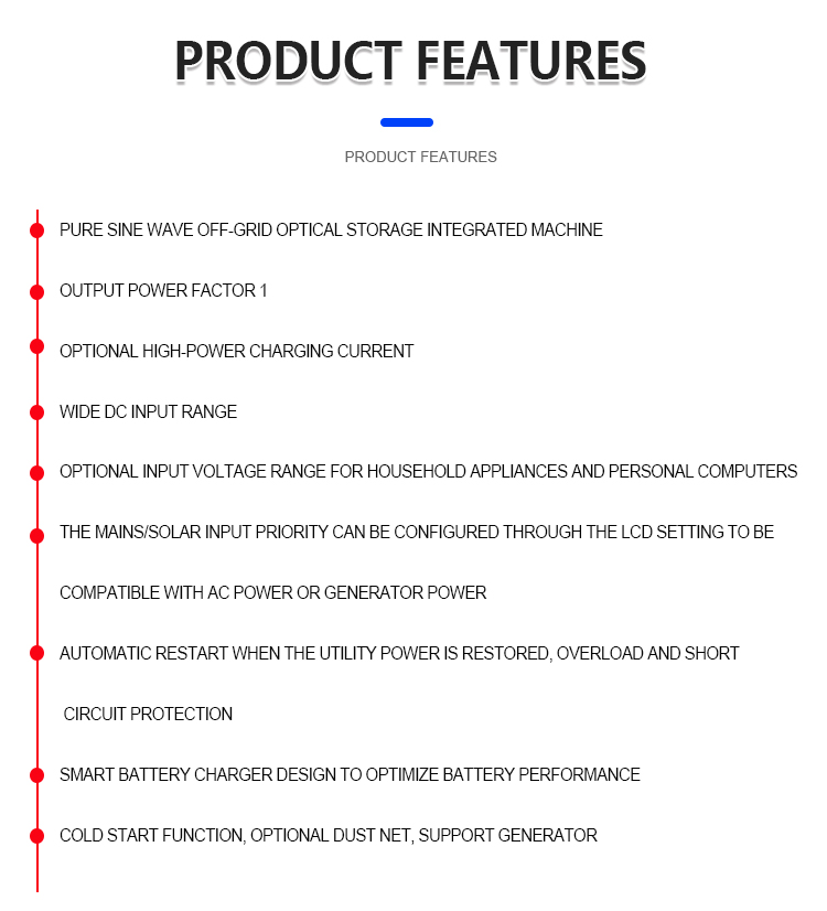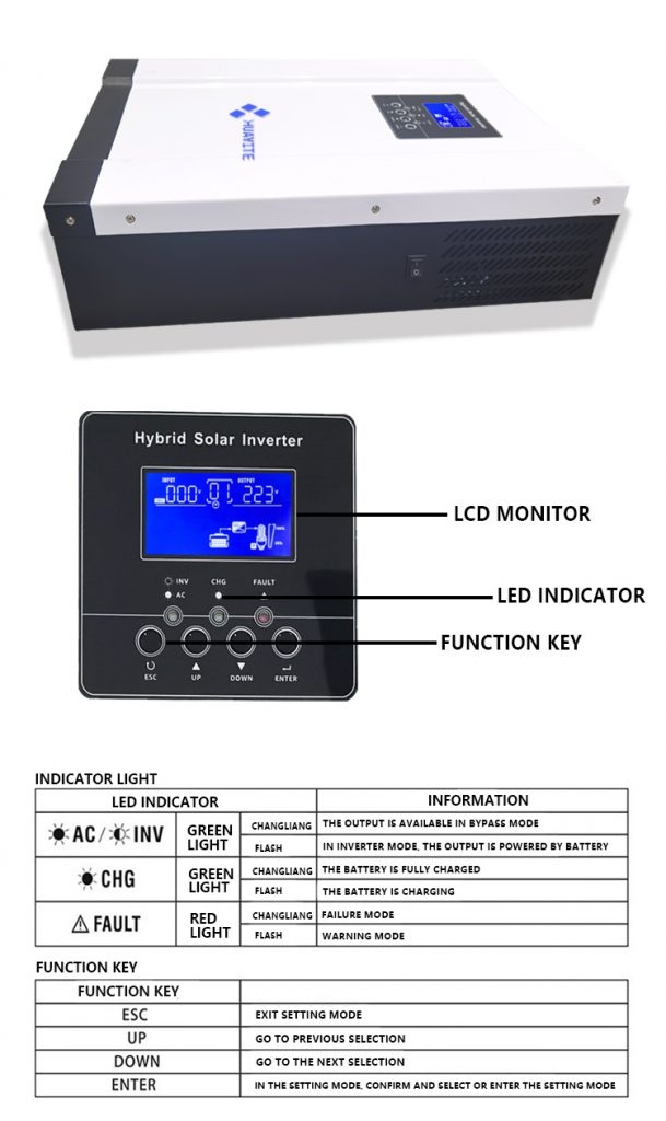 混合式太陽能逆變器,集成mppt太陽能充電控制器、高頻純正弦波逆變器和ups功能模塊于一體,適合應(yīng)用在離網(wǎng)備用電源和自耗電等家電中應(yīng)用WIFI4G模塊,此逆變器可在電池或不帶電池的情況下工作